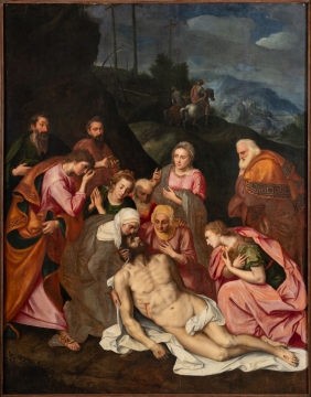 De Bewening van Christus met schenkers is een monumentaal paneel. Het stelt het lichaam van Christus voor, omringd door de Maagd Maria, Johannes en de heilige vrouwen. Twee schenkers, herkenbaar aan de opschriften op hun kleding, nemen deel aan de scène. Het werk combineert op meesterlijke wijze de emotie die eigen is aan Vlaamse meesters, zoals Quinten Metsijs, met de kracht van Italiaanse voorgangers, zoals Michelangelo. Deze compositie, die als het origineel wordt beschouwd, heeft tot talrijke kopieën geleid, zowel in het atelier als daarbuiten. Op die manier droeg dit werk bij aan de verspreiding van dit type beeld in heel Europa. Door zijn monumentaliteit, de kwaliteit van de uitvoering en zijn originaliteit illustreert het schilderij het hoogtepunt van de Antwerpse schilderkunst vóór Rubens.
